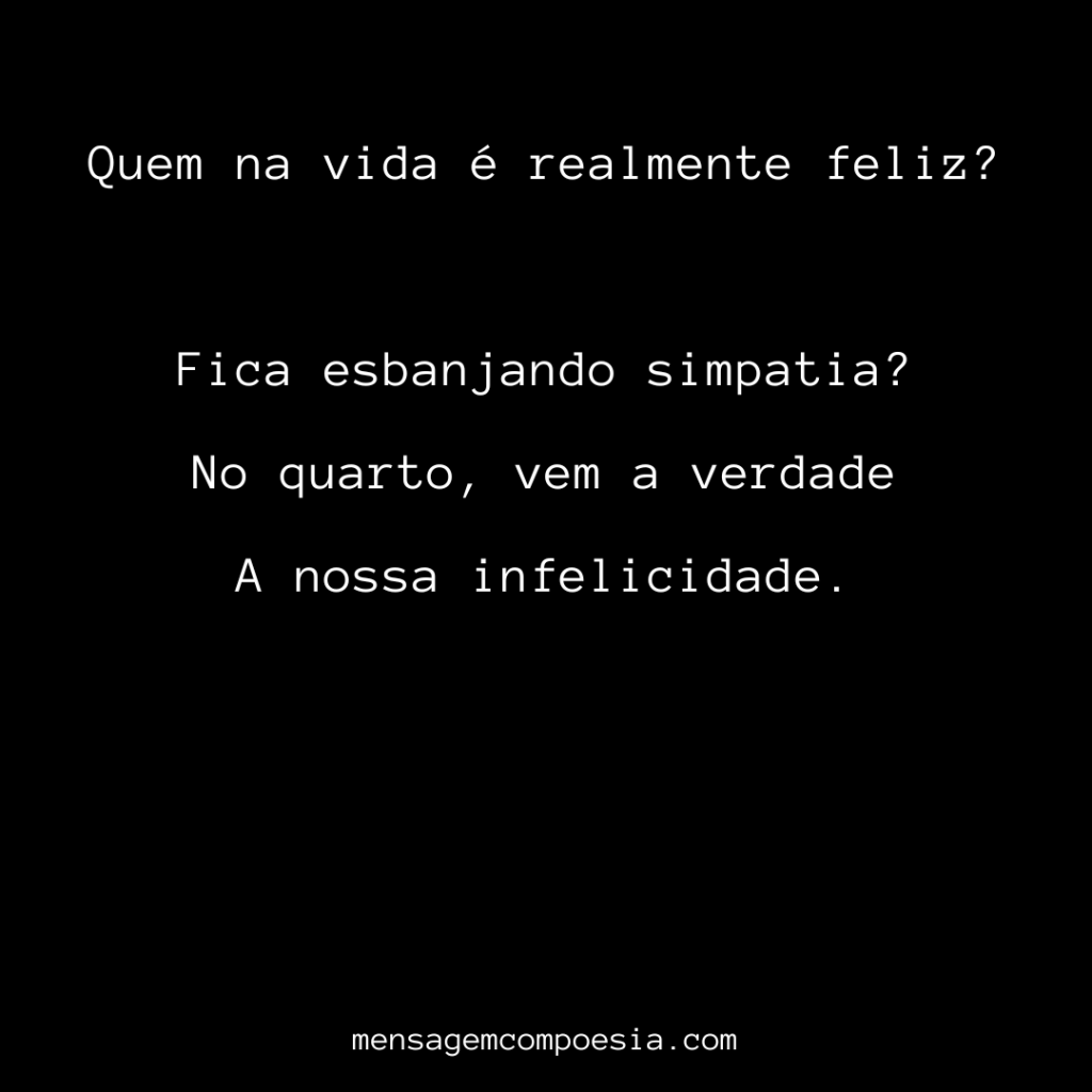 Quem na vida é realmente feliz? Fica esbanjando simpatia? No quarto, vem a verdade A nossa infelicidade.